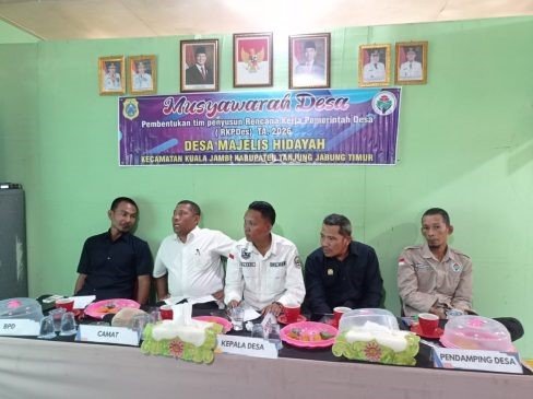 Majelis Hidayah, 23 Juli 2025 – Pemerintah Desa Majelis Hidayah, Kecamatan Kuala Jambi, Kabupaten Tanjung Jabung Timur, menggelar Musyawarah Desa (Musdes) untuk membentuk Tim Penyusun Rencana Kerja Pemerintah Desa (RKPDes) Tahun 2026. Kegiatan ini digelar untuk memastikan perencanaan pembangunan desa dilakukan secara partisipatif dan sesuai kebutuhan masyarakat.